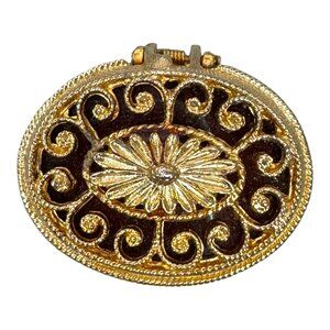 Vintage Max Factor Hypnotique Creme Perfume Compact Gold Tone Art Deco Makeup