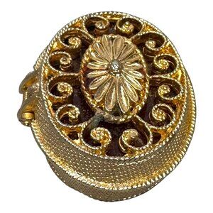 Embrace timeless elegance with this Max Factor Hypnotique Creme Perfume Compact. Its intricate gold tone design reflects sophistication and class. Conveniently sized for your purse, it provides a touch of luxury and an alluring fragrance wherever you go. The compact's decorative appeal makes it a cherished accessory for any beauty enthusiast.