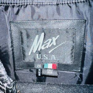 Vintage Max USA America Cities Embroided Leather Jacket 2XL Hip Hop Rare Y2K
