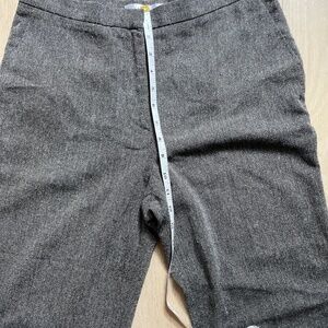 These Italian gray tweed wide leg trousers are made from a blend of virgin wool and silk.
