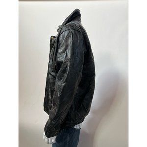 Vintage Maxam Mens Leather Jacket Black Grain Lambskin Zipped Pockets Collared L