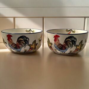 Vintage Maxcera Green Falavera Rooster Bowls Italian Retro Set Of 2