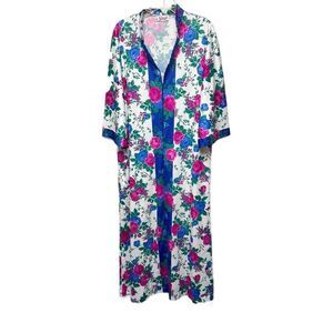 Beautiful vintage dressing gown with floral motif. There is a zipper on the front that opens to the waist. Size is Medium 12-14, but as it is a vintage garment, please see measurements below for fit.