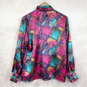Vintage Maxilou Womens Blouse Size 8 Satin Vibrant Dopamine Colorful Statement