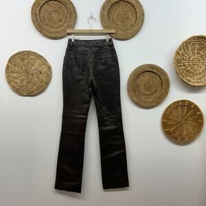 Vintage Maxima Wilsons Leather Neutral Brown Leather Straight Leg Pants 2 Western Festival Fall Winter