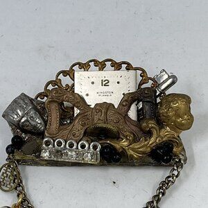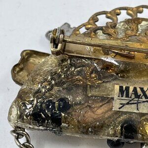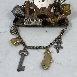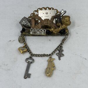 Vintage Maximal Art Collage Brooch Pin Mixed Materials Signed 80 Art Assemblage
