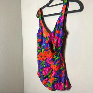 tags: maximalist, Vintage Maxine of Hollywood, retro floral swimsuit, one-piece bathing suit, size small, women's swimwear, vintage-inspired swimwear, floral print swimsuit, high-waisted swimsuit, pin-up style swimwear, classic one-piece, 1980s swimsuit, nostalgic swimwear, timeless bathing suit, chic beachwear, elegant swimwear, flattering one-piece, vibrant floral design, comfortable swimwear, stylish poolside attire, unique vintage swimsuit