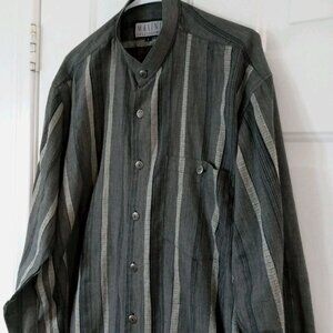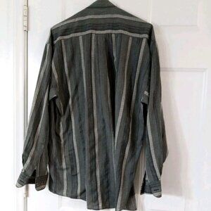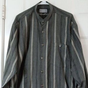 Vintage Maxini Collezione Shirt Men’s Large Gray Striped Button Up Long Sleeve