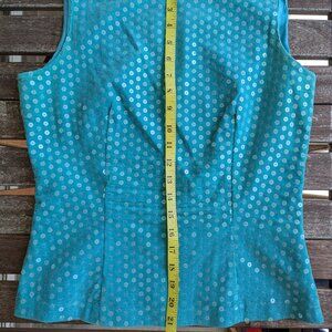 Make a statement with this stunning vintage Maxou dress! This turquoise beauty is adorned with shimmering sequins, perfect for adding a touch of glamour to any event. The dress features a flattering sleeveless design, a fitted waist, and a back zipper for easy wear. It is fully lined for comfort and has a sophisticated silhouette that will turn heads wherever you go. Ideal for parties, special occasions, or just a fun night out! As with many sequin dresses, sometimes the zippers need a little finesse, but they work. Excellent condition.