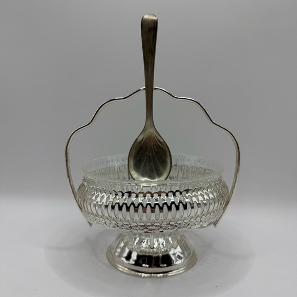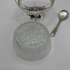 Vintage Mayell Silver Plated Crystal Condiment Jam Bowl w/ spoon Made in England