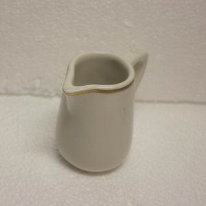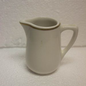 Very nice, white, vintage restaurant ware creamer. It has a gold rim and is in very good shape - no chips or cracks. The gold rim may show some signs of wear. There is a dark spot on one side of the creamer that seems to be under the glaze. I tried to show this spot in the images.