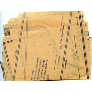 Outer envelope shows wear and tearing; pattern pieces appear unused and in good condition. Envelope measurements = 9.5x6 inches cut and complete.