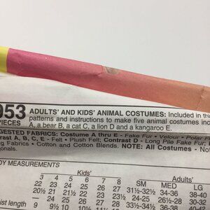 Vintage McCalls Costume 8953 Easy Sew Bunny Bear Cat Lion Kangaroo Size CL 6 7 8