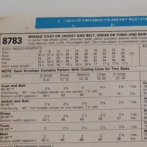 Vintage McCall's Sewing Pattern 8783 Miss Ex Small. Coat or Jacket and Belt, Dress or Tunic and Skirt Size Ex-Small Circa 1983