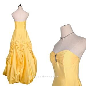 Strapless Prom Dress Maxi Ball Gown by Jessica McClintock Gunne Sax Vintage 90s Y2K- Size 5/6 - Yellow