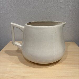 This is a beautiful piece perfect for staging in your home decor or adding a plant. Lots of vintage crazing & it is worn with age. I see one hairline fracture at the surface of the rim that has not broke through. I expect this piece to last many more years. Please view all the photos prior to purchasing. Stands approx. 6" tall & 5" opening. 8" total width with the handle.