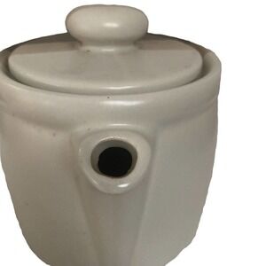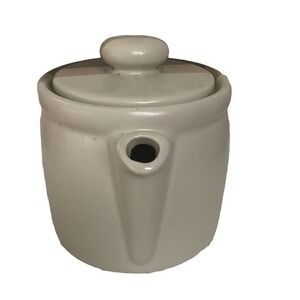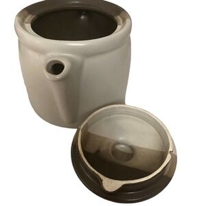 Vintage McCoy Pottery Sandstone Teapot Striped Brown Cream Tan 1418 Signed