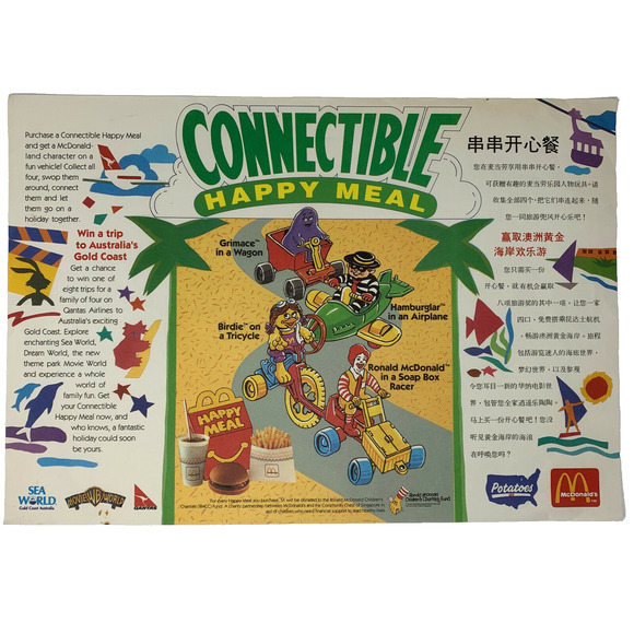 Vintage 1980s 1988 McDonald's Chinese China Connectible Happy Meal Placemat Trayliner Fast Food