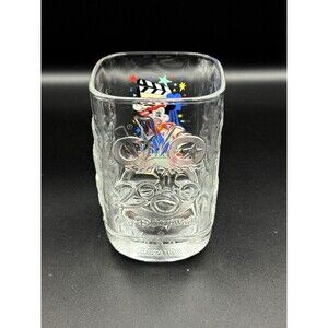 The product is a vintage McDonald's collectible glass featuring Mickey Mouse from Disney, specifically made for the 2000 Millennium Celebration. This glass was manufactured in the United States and is part of the Disney franchise. Perfect for Disney fans, collectors of contemporary Disney memorabilia, and collectors of vintage Disneyana memorabilia, this glass showcases a classic character in a unique and limited release design.
