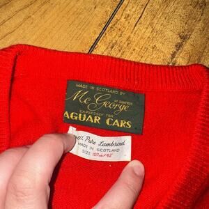 The Vintage McGeorge of Dumfries Lambswool Sweater in red with a V-neck is a classic and stylish piece of men's clothing. Made from high-quality lambswool, this pullover sweater is perfect for adding a touch of warmth and sophistication to any outfit. The distressed 107 indicates that this sweater has a unique and timeless appeal, making it a standout addition to any wardrobe.
