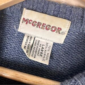 Vintage McGregor Gray Blue Argyle Wool Sweater Size Large