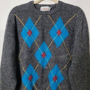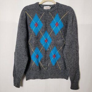 Vintage McGregor Mens Gray Wool Blend Argyle Print Grandpa Crew Neck Sweater XL