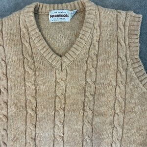 Vintage McGregor Men’s Wool Blend Cable Knit Sleeveless Vest Tan L Made In USA