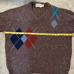 Vintage McGregor Sweater 80’s Purple Red Marled L V-Neck Wool Diamond Grandpa