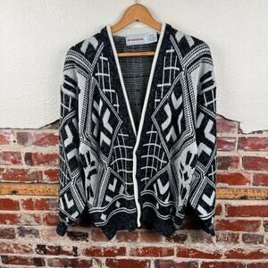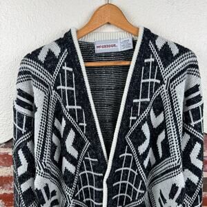 Vintage McGregor Sweater Size Large Black White Geometric Button Up Cardigan 90s