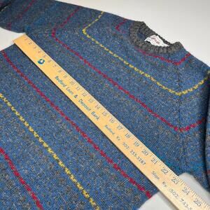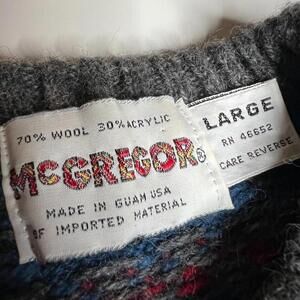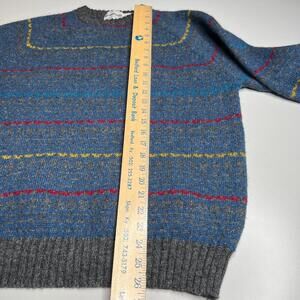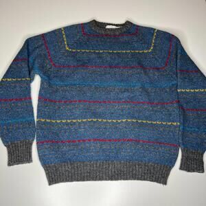 Vintage McGregor Wool Blend Sweater Large USA Made Blue Gray Striped Pullover 80