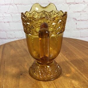 Vintage McKee Queen Daisy and Buttons Amber Glass Footed Pitcher