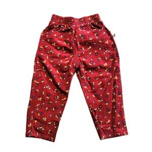 Vintage McKids Coduroy Pants Berry Red w/ Fruit Flowers Elastic Waist Size 2T