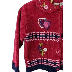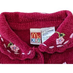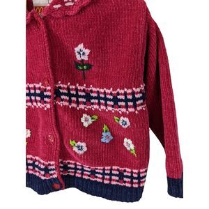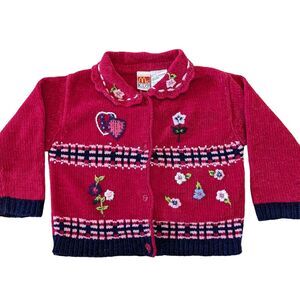 Vintage McKids Girls Cardigan Sweater Red Floral Long Sleeve Knit Collared 24M