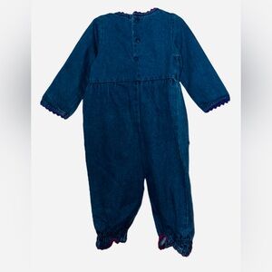 Vintage McKids McBaby Long Sleeve Denim Overalls 18 Months Bubble Leaves Ric Rac. One piece outfit romper. So cute. Blue Jean denim with chest leaf embroidery. Preowned. Smoke free 1 white dog home