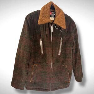 Vintage McLaren XL Full Zip Chore Coat Brown Wool Plaid Barn Winter Cabincore Men’s