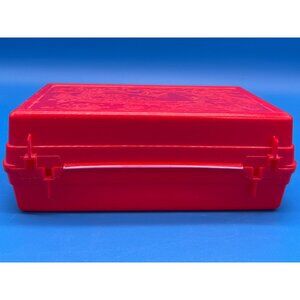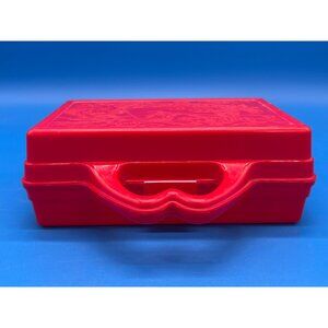 A nostalgic storage solution from the late 1980s, this vibrant red plastic case offers both functionality and a touch of retro McDonald's charm. Designed for portability and protection, it features a distinctive arched handle and textured lid with embossed graphics.