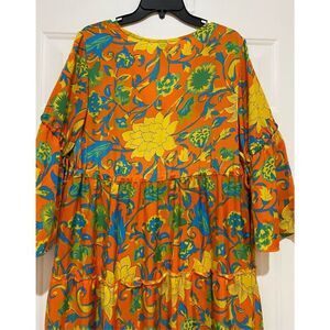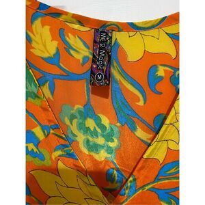 Vintage Me 2 Magic Women’s Medium Vibrant Orange Yellow Floral Maxi Dress Tie