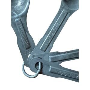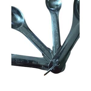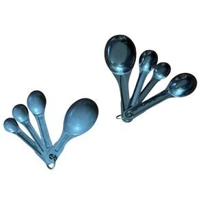 Wear is present. 2 sets of spoons. 8 measuring spoons total. Everybody’s perception of condition is different so please refer to pictures of the item for they are a large part of the description. Please zoom in on all pictures and see for yourself. This is a vintage item sold as is with all its original wear. Colors may vary due to lighting and screen settings.