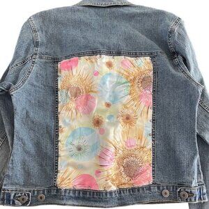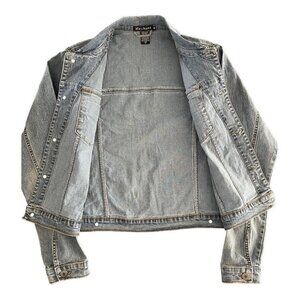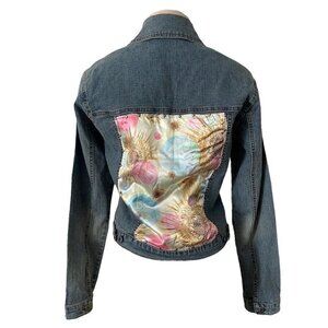 Vintage Mechant Stretch Denim Jean Short Jacket Studded Flower Back Detail