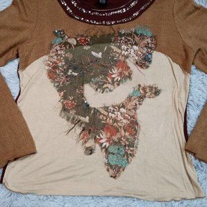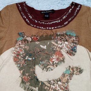 Vintage Mechant Womens Sweater Brown Large Lightweight Stretch Floral