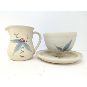 • Hat Pottery 3 Pc Creamer and Covered Butter Dish Signed Taylor