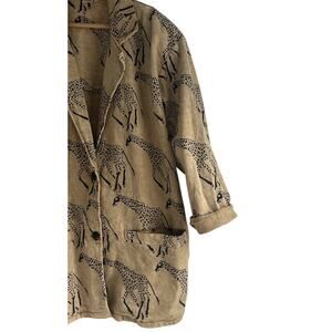 Vintage 100% Cotton Made in India Giraffe Block Print Canvas Blazer Jacket