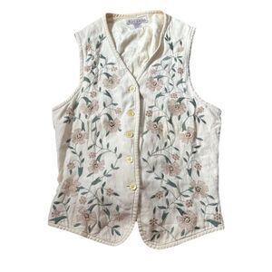 Vintage Medium Ivory Indian Vest Embroidered Flowers Boho