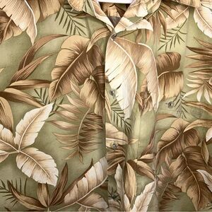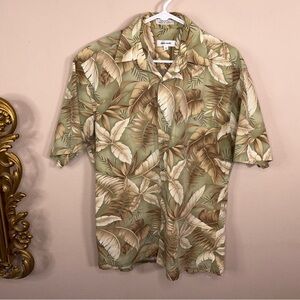 Vintage Medium Pierre Cardin Hawaiian Short Beige Olive Tropical Print Mens