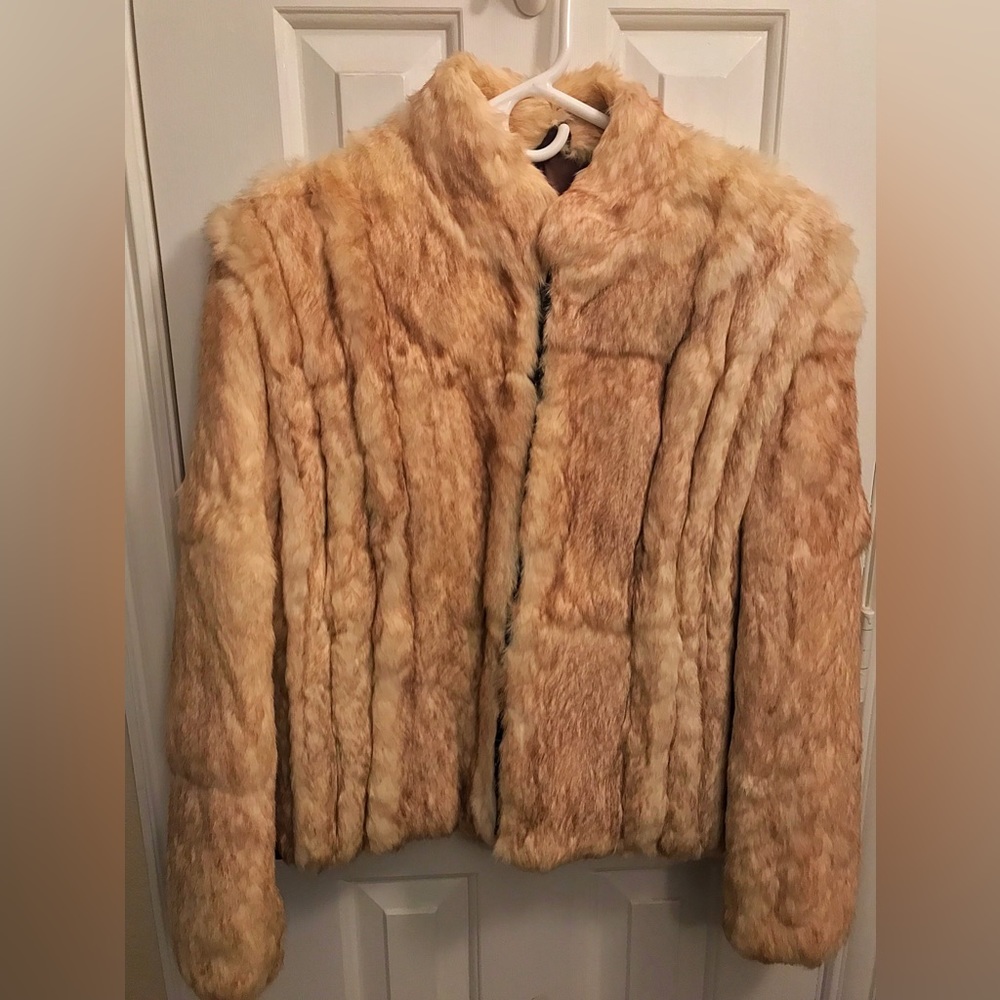 Slightly used Vintage Waist length rabbit coat with zipper.