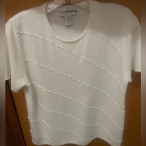 Chic Vintage cream knit sweater by Norton McNaughton. Soft & luxurious with tiny sequined embellishments. Crew neck design. Perfect for all season weather.