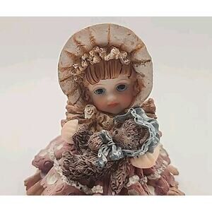 Vintage Meerchi MRH Little Girl w/ Teddy Bear Resin Figurine 3.25" Hand Painted