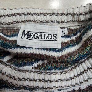 Vintage Megalos 3D Sweater Mens LT Large Tall Multicolor Textured 80s Grandpa
