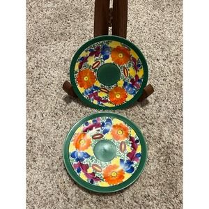 Vintage Meito China Bread Butter Plate Japan Hand Painted Green Orange Flower