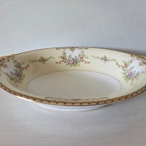Vintage Meito China Made in Japan Hand Painted Oval Serving Bowl Tab Handles
